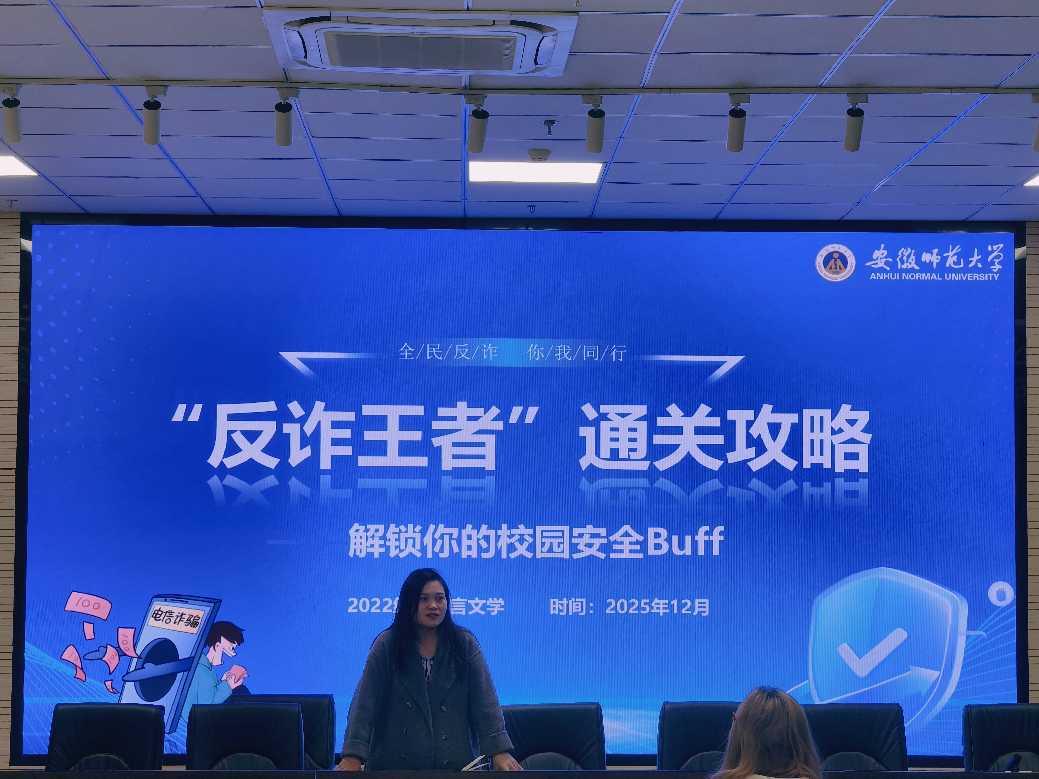 为切实增强学生安全防范意识,筑牢校园安全防线,12月2日晚,文学院2022级汉语言文学(非师范)、秘书学、汉语国际教育专业于文典楼F108召开冬季安全教育主题班会。班会围绕消防安全、交通安全、生命健康及防范电信网络诈骗等重点内容展开,引导学生自觉树立安全意识,掌握安全技能,平安度过寒冬。