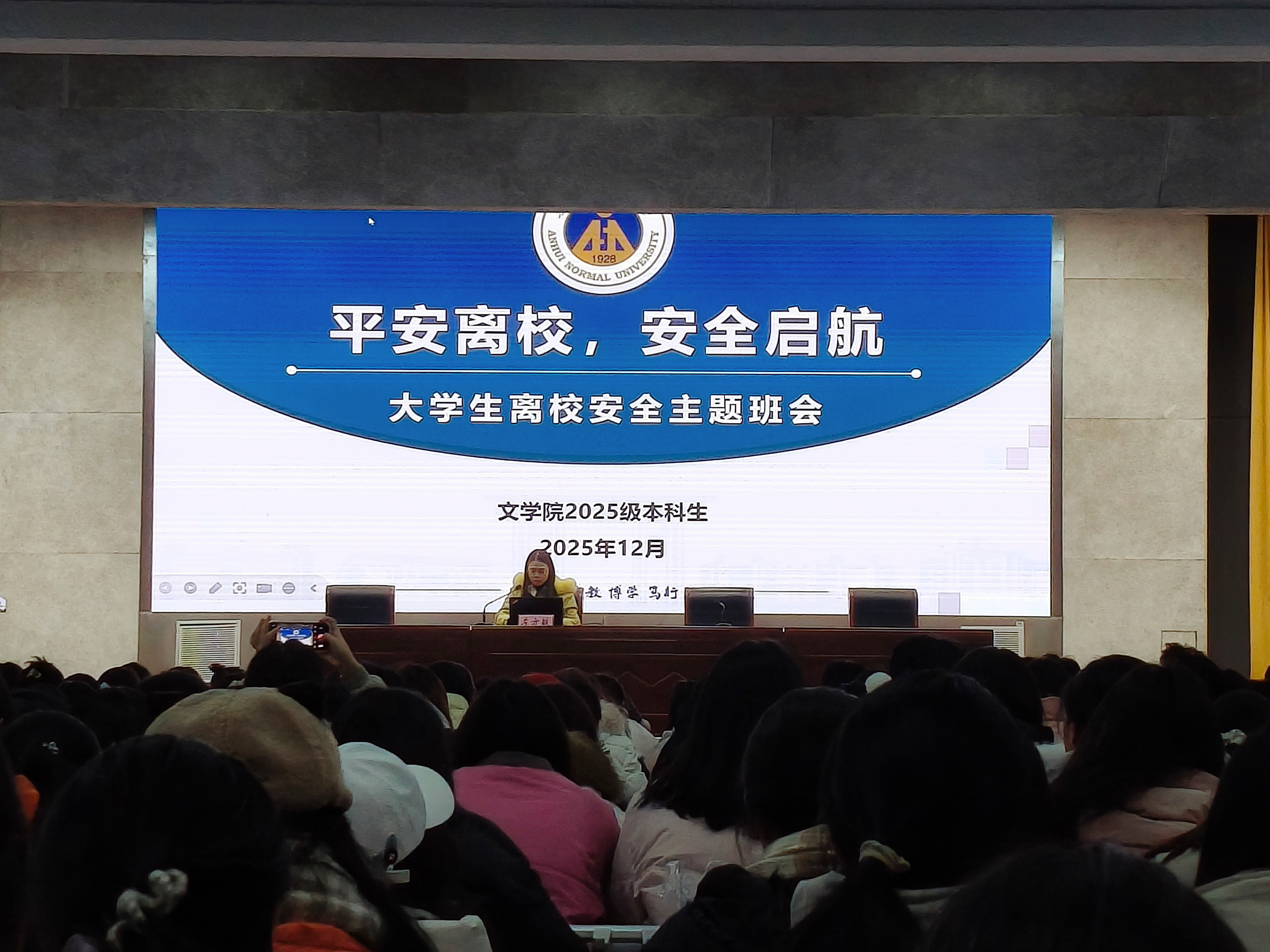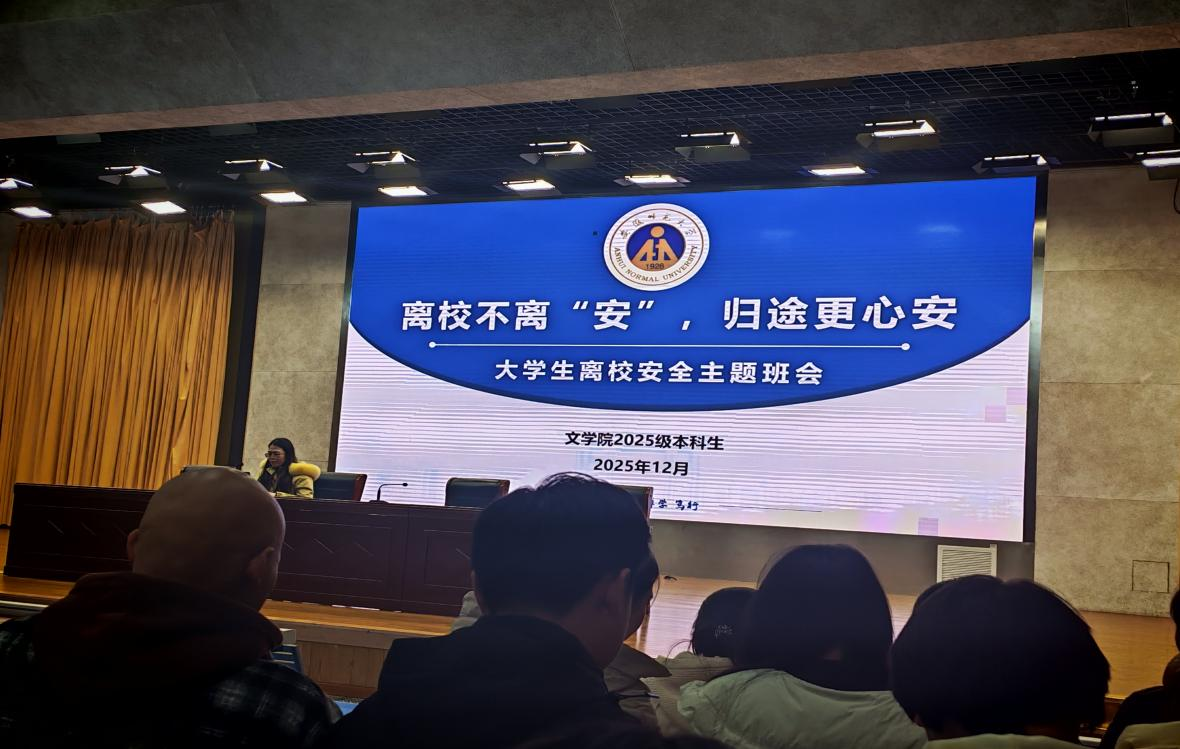 为切实做好寒假期间学生安全管理工作,筑牢学子离校返校安全防线,12月30日下午,文学院2025级本科生开展以“平安离校,安全启航”为主题的寒假离校安全教育班会,班会由辅导员温苏雅主持。