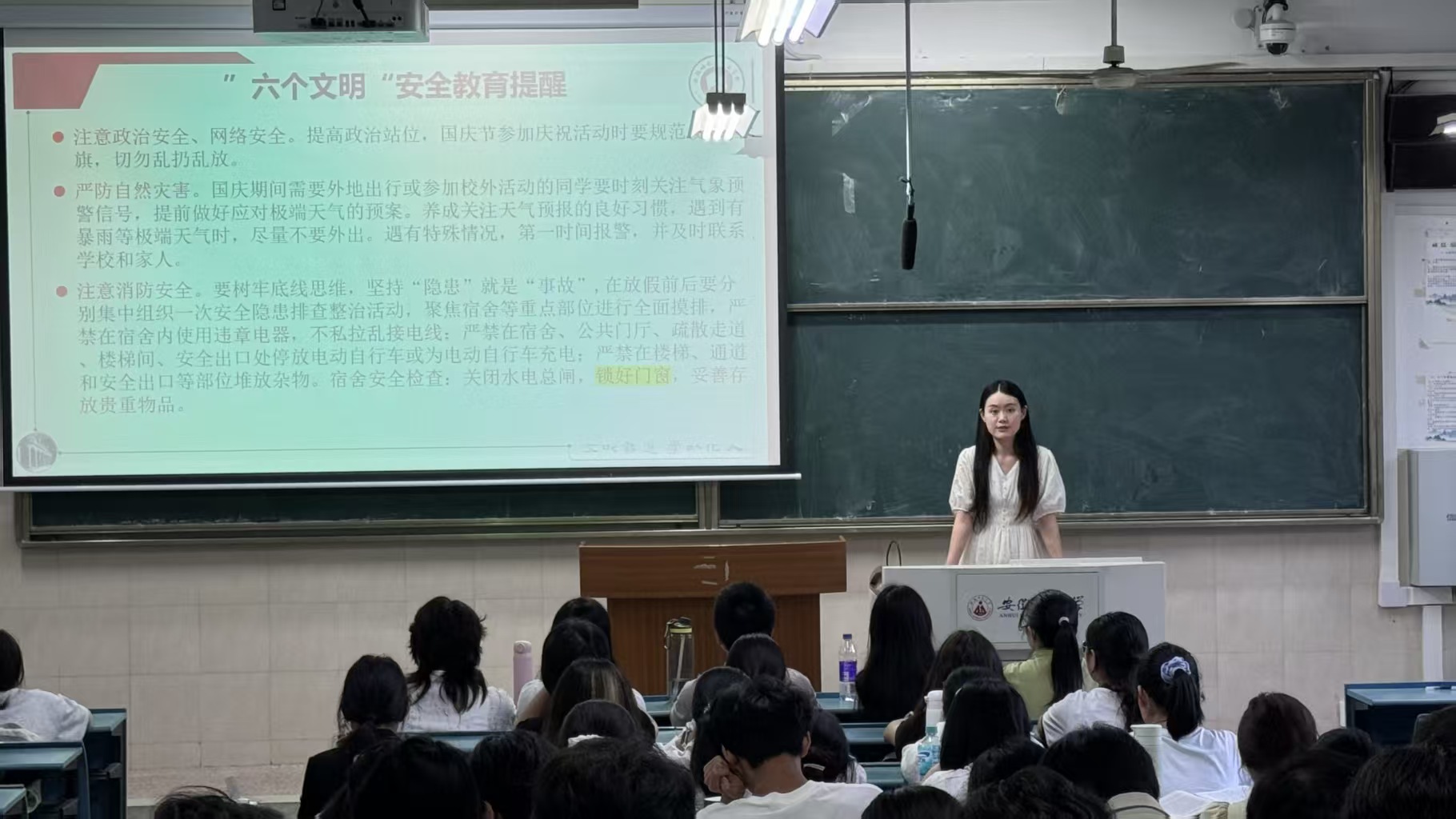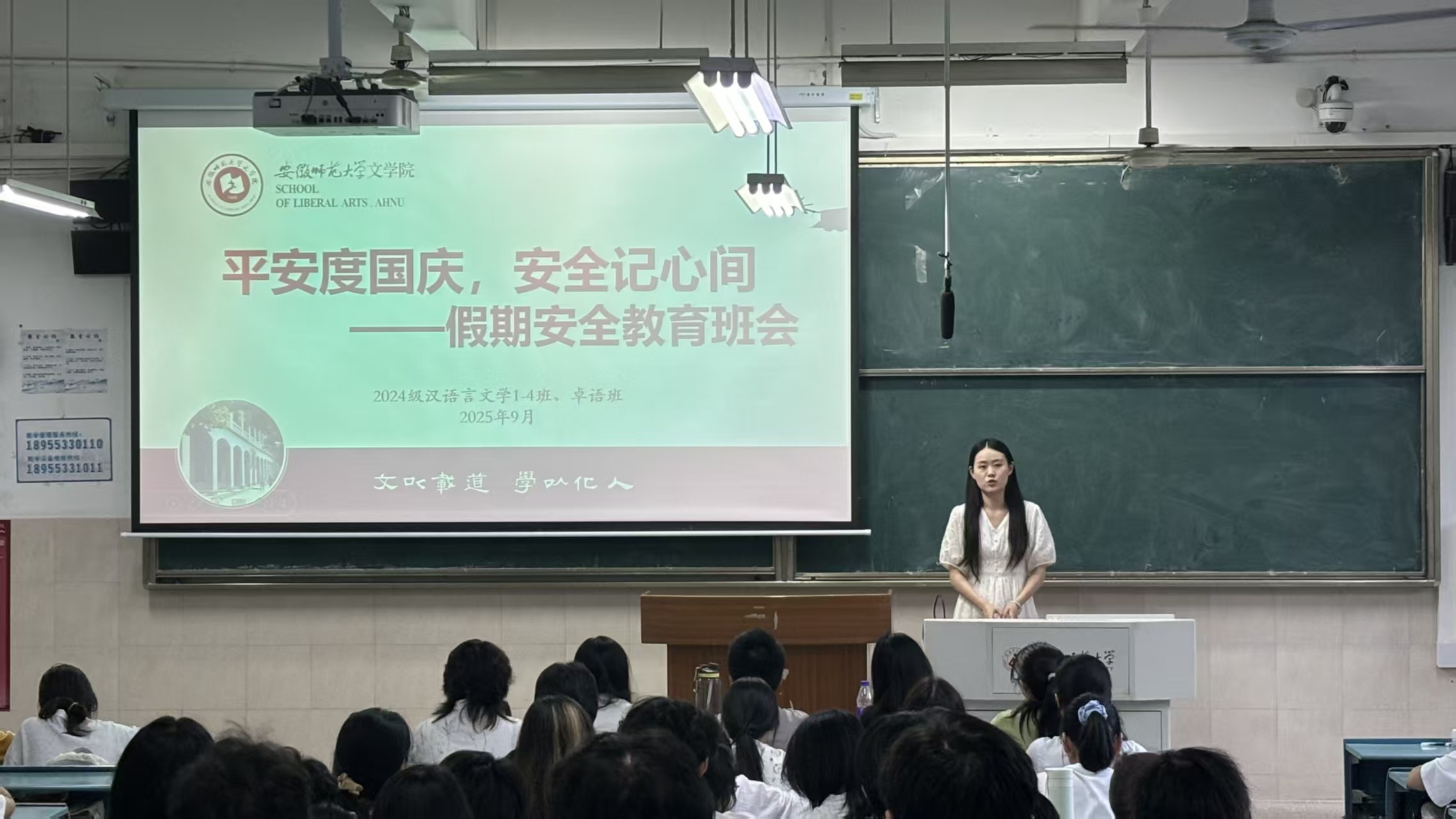 为切实增强学生安全意识,确保同学们度过一个平安、愉快的国庆假期,9月28日下午,24级汉语言文学1-4班及卓语班开展了“平安度国庆,安全记心间”假期安全教育班会。班会围绕国庆假期安全注意事项、本科生导师制双选工作等近期工作展开,旨在为同学们筑牢安全防线,明晰学业规划。