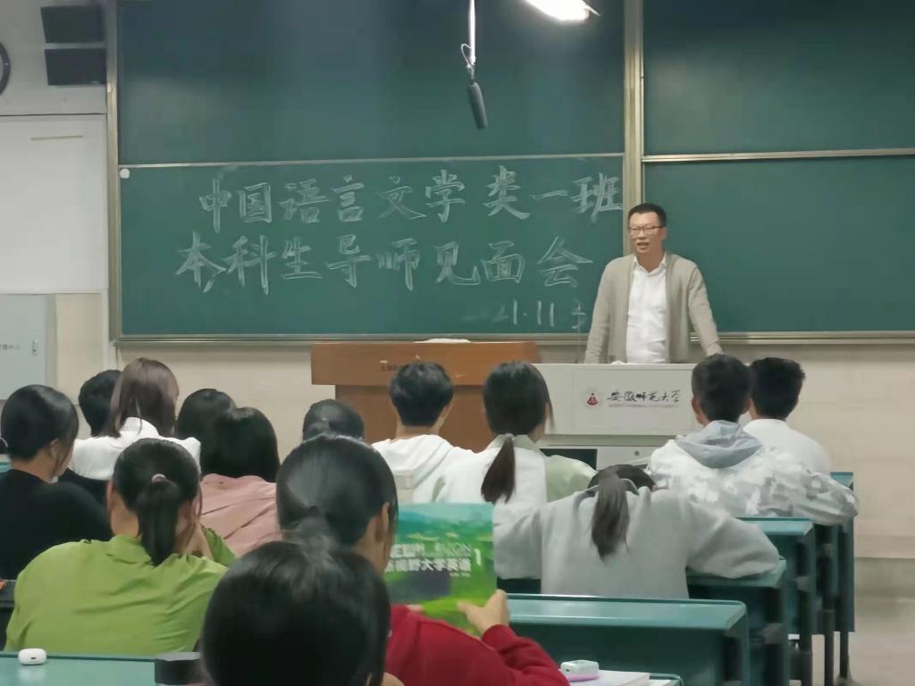 11月10日晚,2021级汉语言文学(师范)专业1班在行知楼举办师生见面会。班导师张爱云从身份转变、学习态度转变以及学习方法转变三个方面提出相关建议,强调大学生需遵纪守法,遵守校园和班级纪律规定,自主规划学习与生活,做到“博学、审问、慎思、明辨、笃行”。