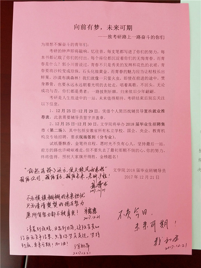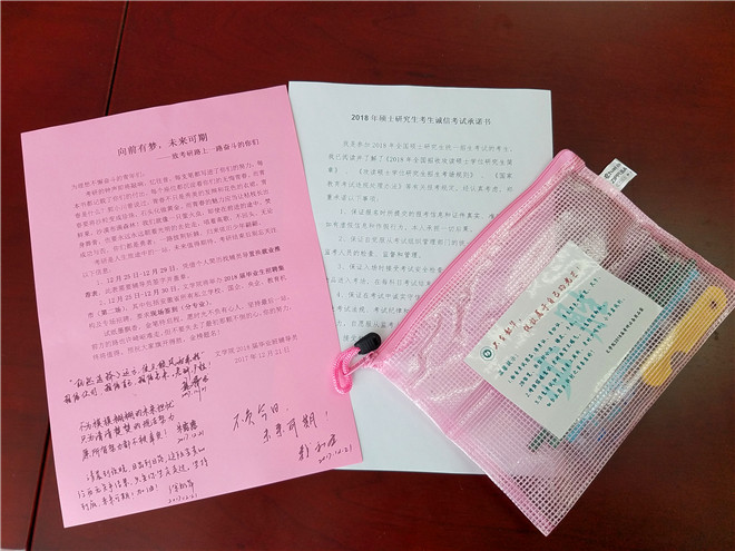 会议伊始,同学们收到了来自学院致考研学子的一封信,领导老师亲笔书写的温暖话语为考研学子加油打气。